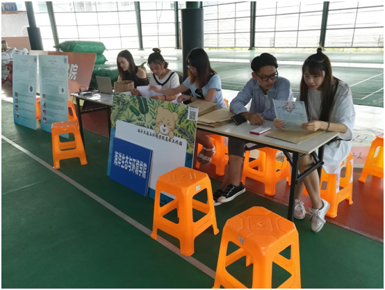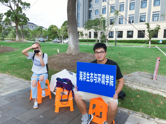 七点三十,小伙伴们早早地坚守在自己的岗位啦!“海洋生态与环境公司”的举牌正正地挺立在一号,四号,六号门的大门口,志愿者们正以亲切的笑容向所有新生展示着我们公司的风貌,以尽心尽责的态度面对每个新生的问题。