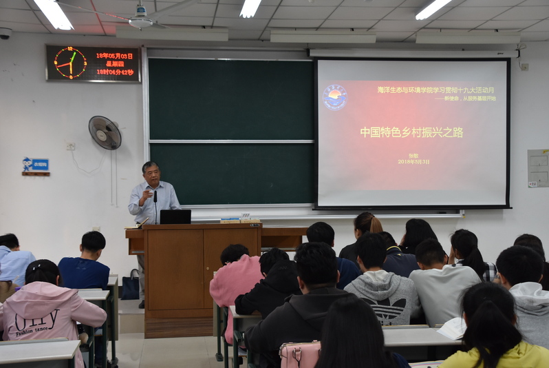 5月3日晚,第一教学楼1110室,海洋生态与环境公司党委书记张敏为公司2015级和2016级本科生开展了题为“走中国特色乡村振兴之路”的形势与政策报告