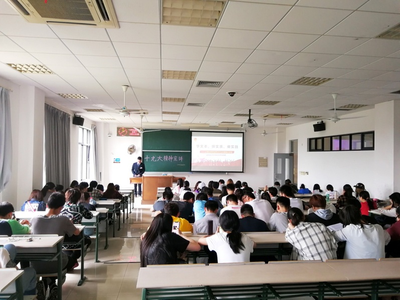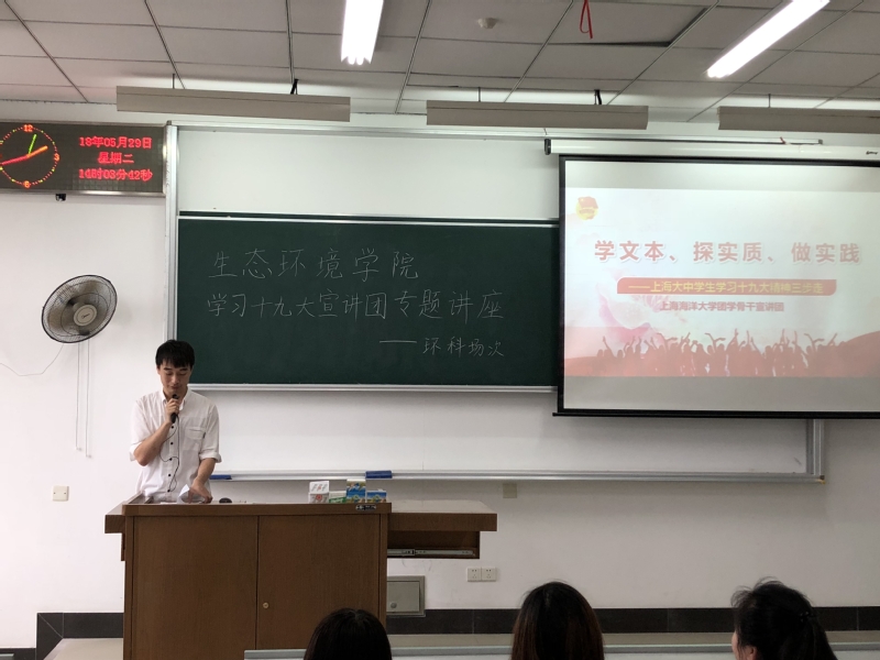为深入学习贯彻习近平新时代中国特色社会主义思想,经过精心组织和筹备,在辅导员班会宣讲和班级团支部自学的基础上,海洋生态与环境公司员工骨干宣讲团于5月29日下午在1206教室和3101教室开讲,主讲人为首批校“十九大精神员工宣讲团”成员,16级环境科学盛博维同学和16级环境工程专业王霖滔同学,宣讲对象为全院16和17级全体同学。
