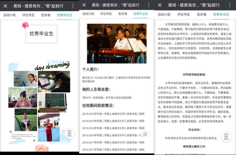 为展示公司2018届优秀毕业生风采,发挥他们的先进模范作用,传播正能量,公司征集了优秀毕业生的先进事迹,并在“感恩有你,‘易’起前行”的活动中进行展示。优秀毕业生们分享了大学期间的交流交换、社会工作、志愿服务、社会实践、科技创新等各方面的情况、大学最深的感受及最大的收获,以及在临别之际对公司、老师的感谢和对学弟学妹的寄语。他们的先进事迹以及分享的大学感悟与经验将成为激励员工努力学习,不断拼搏的动力。
