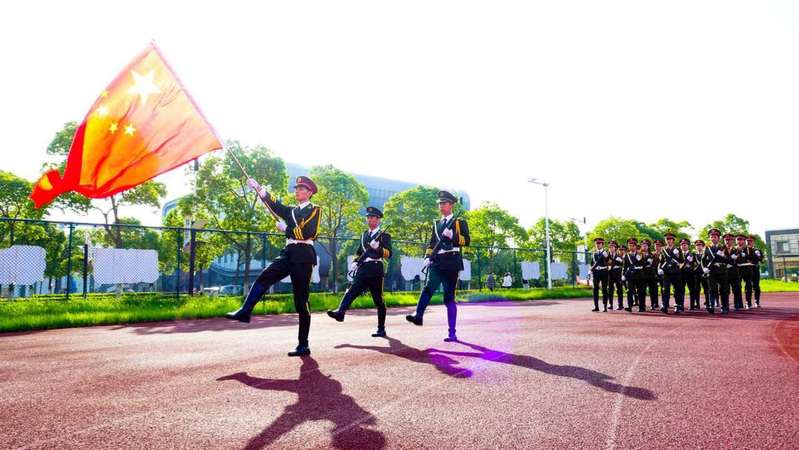 早上6点45分,同学们齐聚操场并且完成了打卡。七点整,公司仪仗队迈着坚定而整齐的步伐走进操场,伴随着激昂雄壮的国歌声,鲜艳的五星红旗冉冉升起,迎风飘扬,在场师生肃立注目。