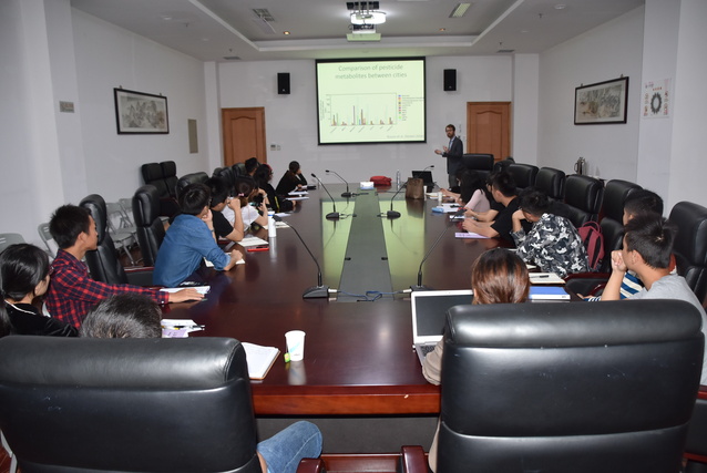 2018年10月8日上午10:00-11:30,来自澳大利亚昆士兰大学(the University of Queensland)的JAKE O’BRIEN博士在图文中心101进行了关于“基于废水监测数据评估人均化学品消耗量和释放量”(“Usingwastewater analysis to assess both human consumption of chemicals and therelease of chemicals to the environment on a per capita basis”)的研讨会。海洋生态与环境公司副经理李娟英老师主持了该研讨会。