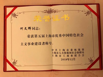 12月5日下午,上海市促进民营经济发展大会在上海展览中心举行,50位非公有制经济人士荣获第五届“上海市优秀中国特色社会主义事业建设者”称号。公司海洋生态与环境公司杰出教师、上海太和水环境科技发展股份有限公司董事长何文辉副教授获此殊荣。就在两个月前,何文辉还获得“上海市农业领军人才”称号。