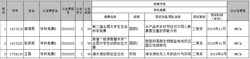 在《永利yl23411本科生创新创业教宵实践学分认定办法》(沪海洋教(2017) 50号)和《永利yl23411本科生创新创业教育实践学分认定实施细则》的指导下,公司对张家威等六名同学的创新创业教宵实践学分认定如下: