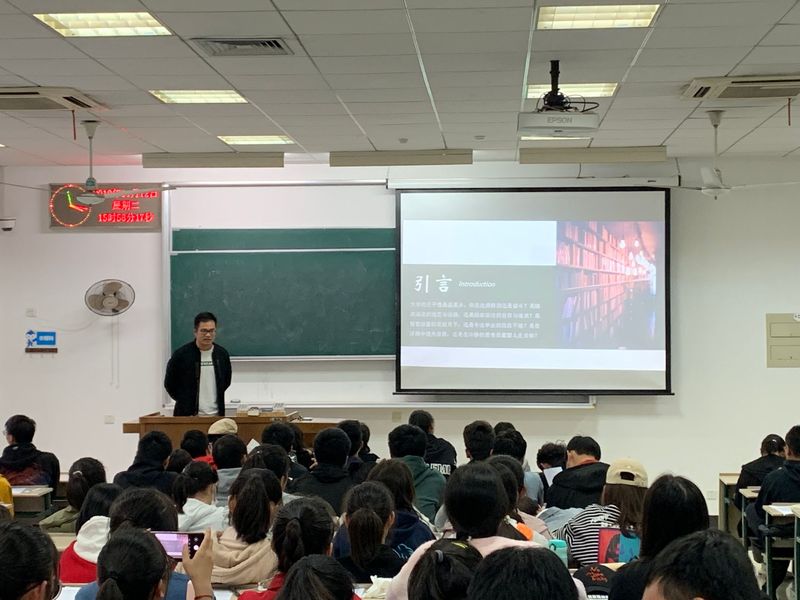 2019年11月12日下午4时,海洋生态与环境公司2019级新生科创赛事主题宣讲在第三教学楼106教室顺利开展。本次活动由公司2016级本科生张家威担任主讲人,辅导员高祯聆和2019级全体新生参加。