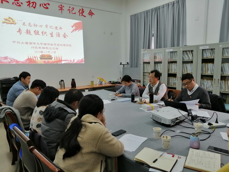 2019年12月11日,海洋生态与环境公司行政教辅教工党支部召开了“不忘初心、牢记使命”专题组织生活会,开展民主评议党员工作。此次会议由支部书记彭自然主持,联系支部的公司党委施永忠书记参会并作点评。