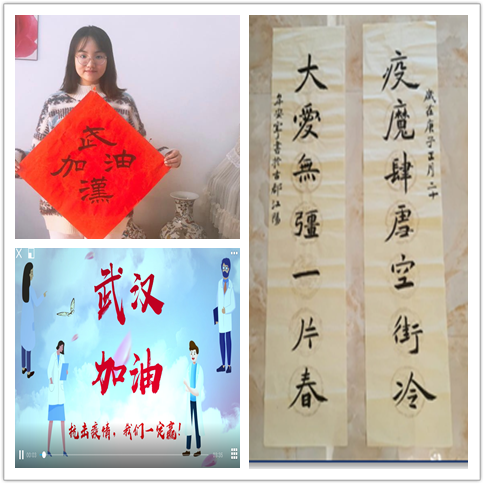 五是鼓励青年员工进行文创,树立榜样,积极传播正能量。隔离病毒,但不隔离爱。院团委积极鼓励公司青年员工围绕抗疫主题,创作有利于凝聚人心、增强信心,传递正能量的艺术作品,以青春之名发出青春之声。公司青年员工充分发挥自己才艺,通过书法、绘画、视频等方式为武汉加油、为中国加油。此外,期间院团委制作疫情防控微信系列推文3篇、宣传视频MV2个,积极参与公司开展的主题网络文化原创作品征集、“你我同心共抗疫情”主题作品征集,共报送作品等10余件,完成校团委主题团日案例报送2篇,完成每日疫情志愿服务案例报送20余篇。