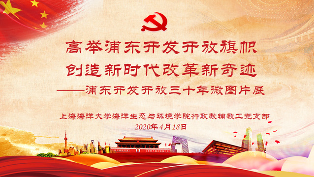 4月18日至23日,海洋生态与环境公司行政教辅教工党支部以“高举浦东开发开放旗帜,创造新时代改革新奇迹—浦东开发开放三十年微图片展”为主要形式开展了主题党日活动。微图片展以纪年形式反映了在党中央的坚强领导下,上海市贯彻“开发浦东、振兴上海、服务全国、面向世界”的战略意图,敢闯敢试,先行先试,坚定不移深化改革开放,与时俱进行创新探索,取得一个个浦东开发开放重大成果,谱写三十年发展的光辉历程。
