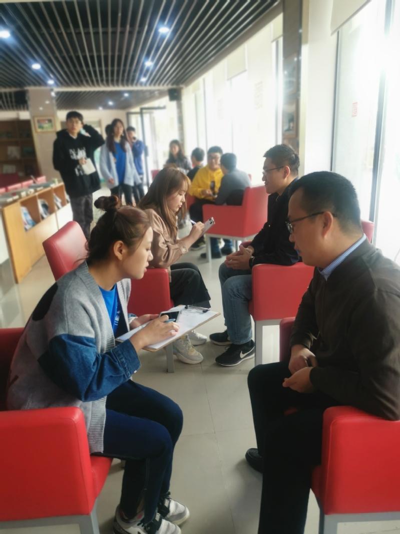 10时,各位员工陆续到达活动中心。随后,员工和老师互致问候,海洋生态与环境公司领导和教师代表对22位员工的到来表示最热烈的欢迎。公司员工工作办公室安排了在校生采访员工,了解他们毕业十年来的工作经历。员工们对广大在校学弟学妹们提出了一些有益的建议,祝愿海大能够越来越好。