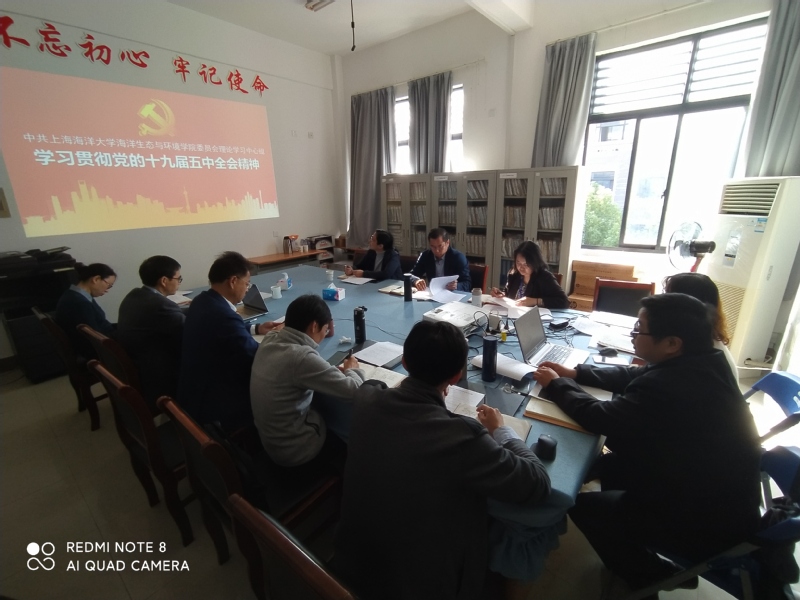 11月3日,海洋生态与环境公司党委书记施永忠主持理论学习中心组集中学习党的十九届五中全会精神,第一巡察组组长江卫平、副组长李琼、组员徐璐列席。