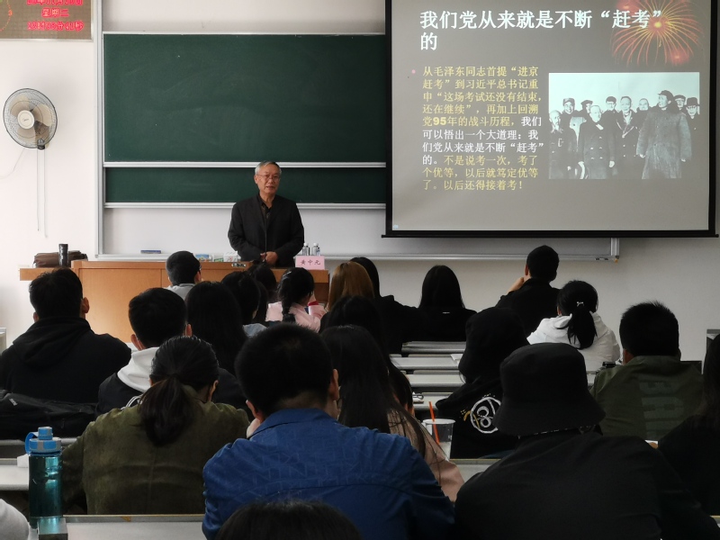 最后,黄中元老师指出,“新时代的赶考”已经来临。新时代要弘扬“赶考”精神,就是要不断筑牢以人民为中心的宗旨观,奋斗的主力军就是在座各位同学。大家要不断增强自己的政治意识、大局意识、核心意识、看齐意识,在以习近平同志为核心的党中央带领下,齐心协力,为实现中华民族的伟大复兴贡献出自己的力量。