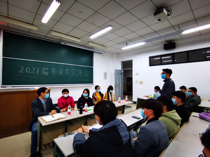 会议初始,高郭平首先向各位同学介绍了2021年就业形势。他说,当今世界面临百年未有之大变局,2021届毕业生同样也面临着机遇与挑战,希望大家敢于尝试,积极应对。黄永莲鼓励大家畅所欲言,积极提出自己的想法和意见。