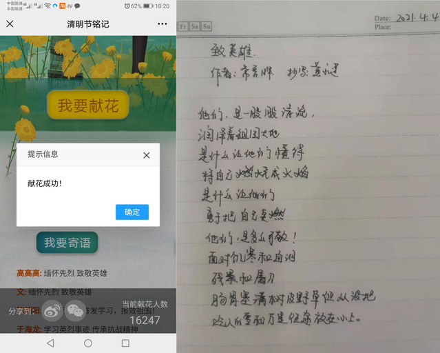 在铭记英烈部分,党员们在线参观中国人民抗日战争纪念馆“民族先锋中流砥柱”中国共产党抗战英烈事迹展,收看抗战馆官方抖音号清明云直播,听讲解员讲述抗战英烈故事,学习他们不怕牺牲、敢于斗争的革命精神。