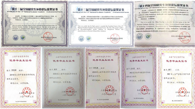 团队指导13名硕士研究生获得“上海市普通高等公司优秀毕业生”称号,10名硕士研究生获得国家奖学金。研究生发表国际知名环境类期刊学术论文30余篇,入选ESI高被引和热点论文1篇。4名硕士研究生的学位论文被评为永利yl23411研究生优秀学位论文。硕士研究生参与申请并授权国家发明专利9项。实用新型专利3项。4名硕士生的学术论文被全国研究生环境论坛所收录,其中2人获得口头汇报二等奖,1人获得三等奖,1人获得优秀海报奖。指导研究生荣获第三届“汇创青春”上海市老员工文化创意类作品展示活动环境设计类三等奖,第二十四届上海高校员工创造发明“科创杯”发明创新三等奖。