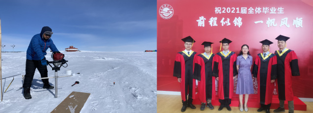 2016级环境科学与工程专业硕士研究生王丹赫南极采样(左) 上海市老员工创新项目负责人2005级环境工程专业本科生张何欢(右)