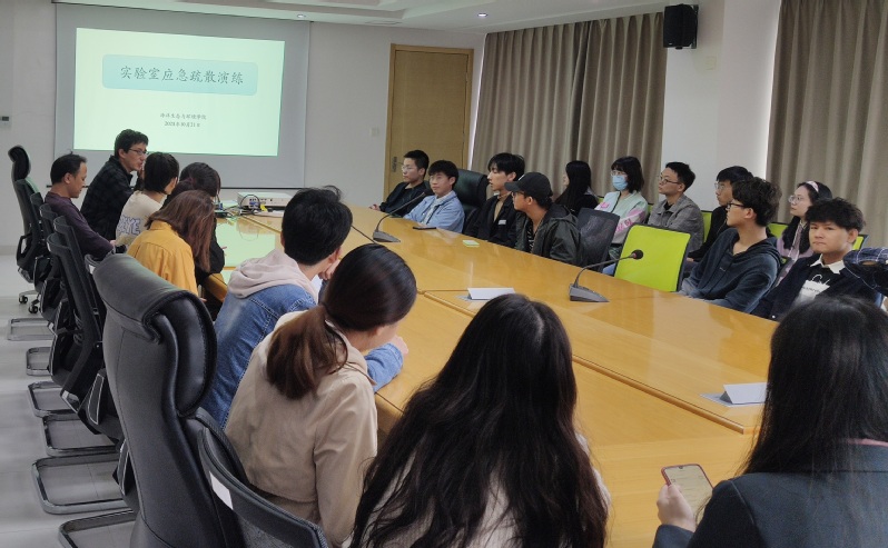 在收到预演警报后,演练人员快速用湿毛巾折叠捂住口鼻,按照疏散指定路线迅速撤离实验室与自习室,靠楼梯右侧有序疏散,到达底层后,在引导员的指引下在指定避险区域集合。整个演练过程井然有序,达到预期效果。