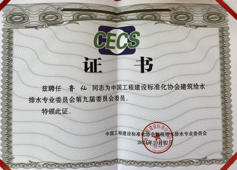 在大会上,中国工程建设标准化协会建筑给水排水专业委员会选举产生第九届委员会,永利yl23411海洋生态与环境公司青年教师鲁仙当选为专业委员会委员。会议还围绕公共安全、用水健康、减碳节能、资源环保、使用舒适等主题展开深入交流和讨论。
