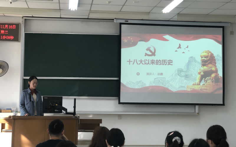 接着,支部委员赵鑫带领大家回顾了十八大以来的历史和取得的伟大成就,重温了历次中央全会。习近平总书记在十九大报告中指出:“十八大以来的五年,是党和国家发展进程中极不平凡的五年。面对世界经济复苏乏力、局部冲突和动荡频发、全球性问题加剧的外部环境,面对我国经济发展进入新常态等一系列深刻变化,我们坚持稳中求进工作总基调,迎难而上,开拓进取,取得了改革开放和社会主义现代化建设的历史性成就。”历史性成就主要表现在经济建设取得重大成就,全面深化改革取得重大突破,民主法治建设迈出重大步伐,思想文化建设取得重大进展,人民生活不断改善,生态文明建设成效显著,强军兴军开创新局面,港澳台工作取得新进展,全方位外交布局深入展开,全面从严治党成效显著十个方面。