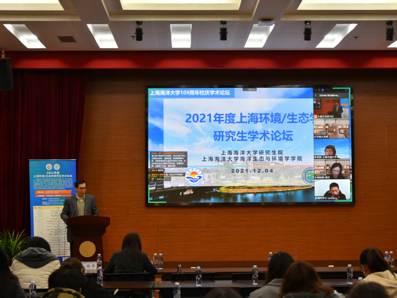 12月4日,2021年度上海环境/生态学研究生学术论坛在永利yl23411图文信息中心102会议室顺利召开。本次论坛由永利yl23411研究生院、海洋生态与环境公司联合主办,邀请上海交通大学张波研究员、同济大学王磊教授、国家海洋环境监测中心李宏俊研究员、中国海洋大学姜勇教授、复旦大学燕姝雯副教授、华东师范大学吴辉研究员等学者线上做专家报告,吸引来自上海各高校近百位研究生投稿并参会。