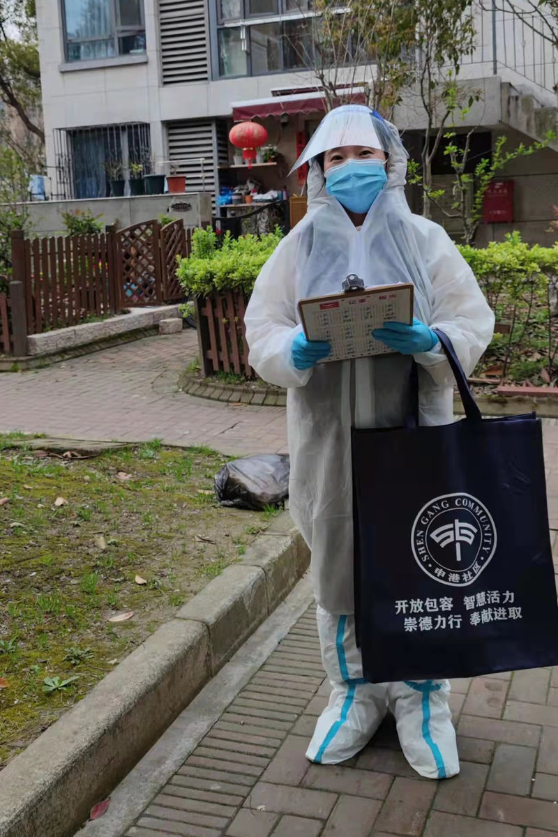 在宜浩欧景小区,公司党委专职组织员潘雪踊跃报名加入社区志愿者行列。为做好摸底工作加速检测进度,潘雪事先加入楼道微信群,将检测教学视频发给大家,提醒大家务必佩戴好口罩,做好个人防护,安心等待志愿者上门。换上“大白”服装后,潘雪便逐户敲门发放抗原检测试剂,遇到独居老人不清楚操作方法,耐心地进行操作指导。住户向她道谢,但她觉得作为一名基层党委的专职组织员,只是参与了社区志愿服务,不值一提。她说,众多医护人员和基层社区工作者,每天都要承担超大负荷的工作量,真心不易。通过社区志愿者经历的亲身体会,她更加感恩一线防疫工作人员,今后会继续积极主动参与社区防疫服务工作,为齐心守“沪”贡献自己的力量。