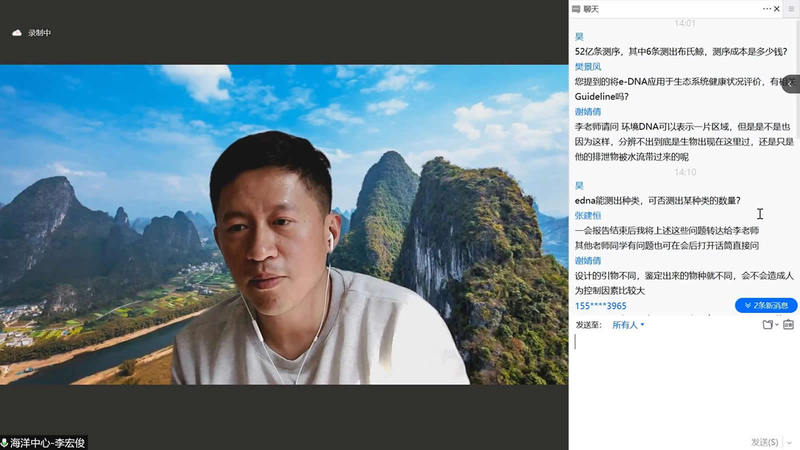 4月30日,国家海洋环境监测中心李宏俊研究员应邀为永利yl23411师生做了《海洋环境DNA监测与分析》为主题的学术报告,此次线上报告由生态工程系副主任张建恒副教授主持,校内外近百名师生在线聆听了报告。