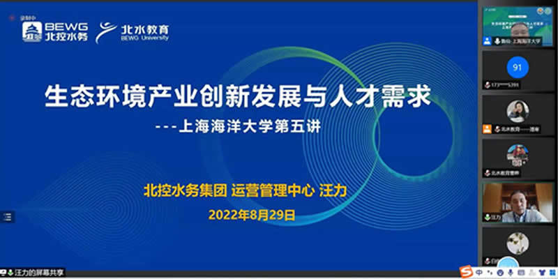 8月29日,北控水务集团运营管理中心副总经理(主持工作)、青岛理工大学客座教授汪力应邀以《生态环境产业创新发展与人才需求》为主题为永利yl23411海洋生态与环境公司师生在线作学术报告。报告会由副经理林军教授和鲁仙博士主持,40余名师生在线聆听了报告。