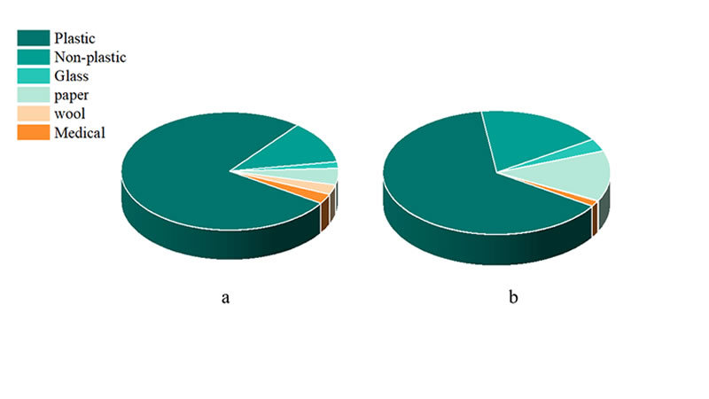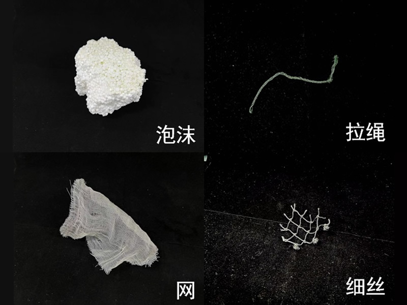 在实验室中,团队成员对固体废弃物样品进行清洗、烘干、分类、拍照和测试。五个地区共采集了陆上固体废弃物98件,其中塑料垃圾85件,占总垃圾数量的86.7%,其它垃圾种类包括玻璃(2.0%)、纸类(5.1%)、皮毛(3.0%)和个人防护用品(3.0%)。