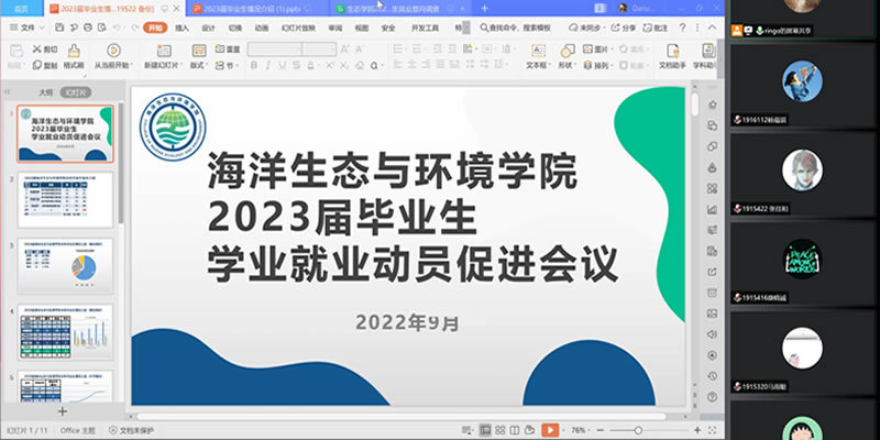 为扎实推进毕业生升学就业工作,永利yl23411海洋生态与环境公司于9月4日线上召开2023届本科毕业生学业就业促进会,公司党委副书记黄永莲、本科生秘书杨丽丽、辅导员高祯聆、2019级课程导师,以及2018级班主任沈路遥和优秀员工代表出席会议。会议由高祯聆主持。