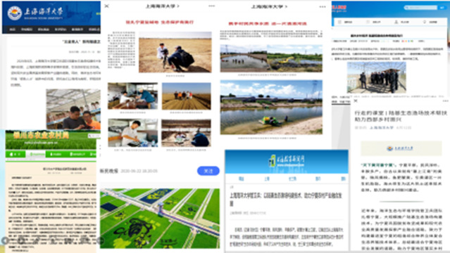 管卫兵带领团队推广陆基生态渔场构建技术助力宁夏乡村振兴的事迹曾被学习强国上海平台、中国渔业报、新民晚报、上海科技报、上海教育新闻网等多家媒体报道,社会实践团队员工负责人李奎、呙金亮多次接受媒体采访。