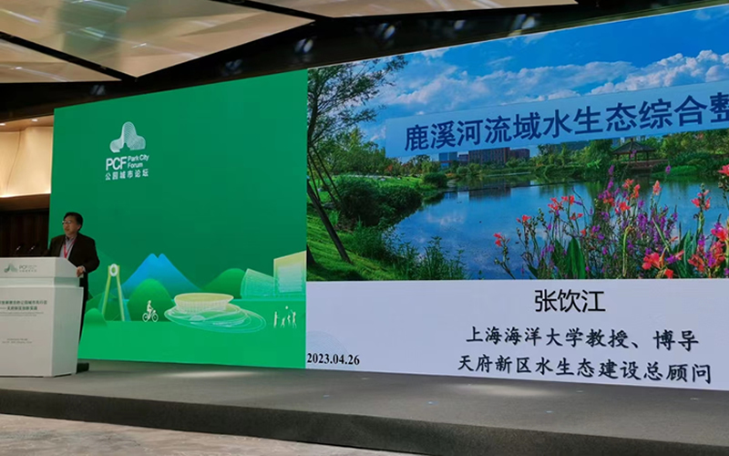 下午,聚焦公园城市价值引领、美学表达、生态建设、宜居品质和双碳实践,举行了“践行新发展理念的公园城市先行区——天府新区创新实践”天府新区分论坛,永利yl23411海洋生态与环境公司张饮江教授受邀以“鹿溪河流域水生态综合整治”为题作了论坛报告。论坛闭幕大会上,天府新区发布了《兴隆湖生态系统修复的创新实践——公园城市首提地·天府新区实践探索》一书,张饮江担任该书副主编。