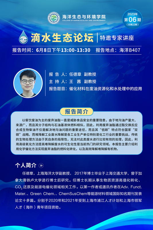 滴水生态论坛:催化材料在废油资源化和水处理中的应用(任德章)