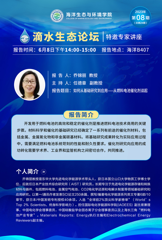 滴水生态论坛:如何从基础研究到应用——从燃料电池催化剂说起(乔锦丽)