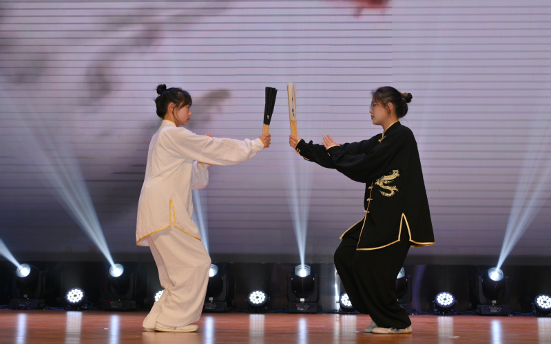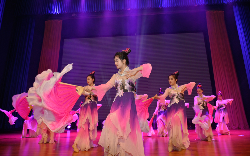 校艺术团舞蹈团优雅的《紫禁流云》,锦扇飞舞,紫衫摇曳,云间转腰,气息灵动,翩若惊鸿,宛若游龙,将中华文化之美描绘得淋漓尽致。闻宇辰、彭俊杰、卢勇静、熊瑞祥和赵晨晨用《Sparks Fly》《燕归巢》《陪你度过漫长岁月》歌曲联唱,将对毕业生同学的祝福与不舍一一展现。晚会最后,公司员工会带来传统保留节目,用可爱的集体舞蹈给大家再次带来不少欢乐。