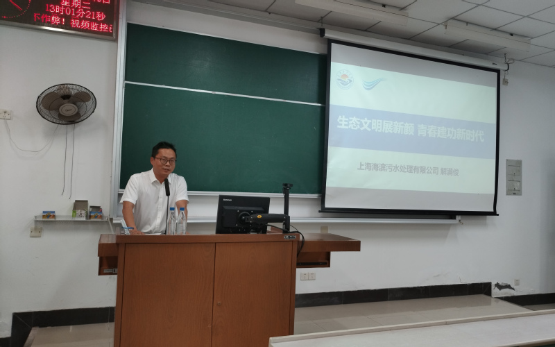 讲座报告主题为“生态文明展新颜 青春建功新时代”。“生态文明展新颜”部分,解满俊首先从浙江省安吉县和苏州河生态治理问题切入,深刻阐述了推进生态文明建设的重要性。随后,解满俊着重介绍生态文明的发展历程,党的十八大把生态文明建设纳入中国特色社会主义事业总体布局,党领导的生态文明建设丰富了人类文明发展的理论体系。“青年建功新时代”部分,解满俊结合自己的成长经历,以“正能量、执行力、个人特长”为关键词指出了青年一代成长的方向。他强调当代青年人才的成长需要注重执行力,建议员工们利用寒暑假增加实践经历、提高实践能力,全面提升综合素质。