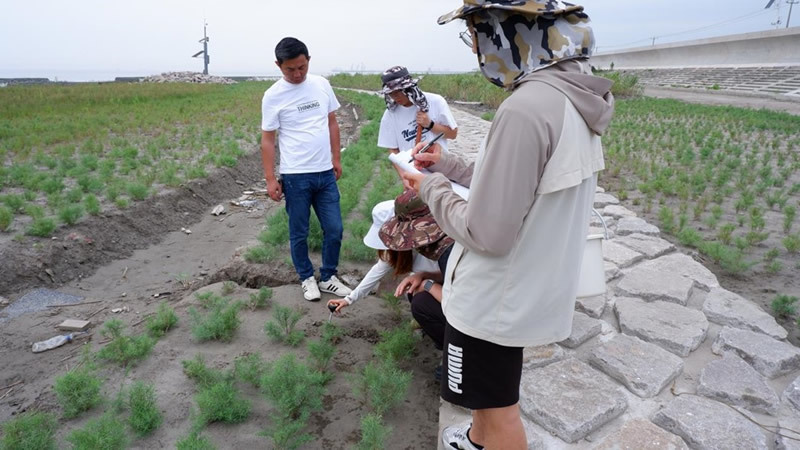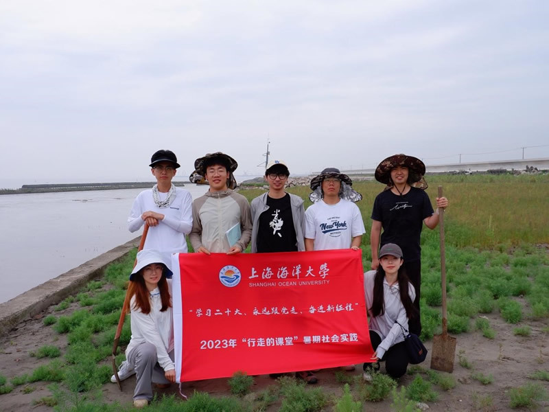 社会实践团队调研发现,上海市盐地碱蓬分布区主要集中在崇明、南汇、小洋山和奉贤。为探究盐地碱蓬植被退化因素及其变色机制,团队选择南汇东滩滨海湿地为研究对象,采集土壤样本进行理化分析,通过室内试验研究盐地碱蓬对温度、盐度和水淹等关键限制因子的适应性和甜菜红素形成与调控机制,分析上海滨海湿地盐地碱蓬种群退化原因,为上海市滨海湿地盐地碱蓬生物多样性保护和生态景观创建提供依据。团队还对盐地碱蓬示范区定期进行杂草清理、旱期补水和移栽补种等维护管理,探索物种多样性保护模式和红海滩碱蓬恢复途径。