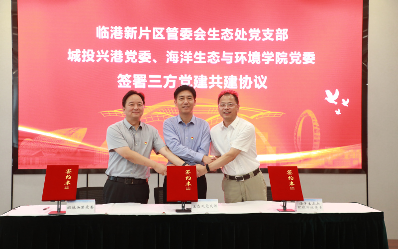 8月23日,中国(上海)自由贸易试验区临港新片区管理委员会生态和市容管理处党支部、上海城投兴港投资建设(集团)有限公司党委和永利yl23411海洋生态与环境公司党委在永利yl23411举办党建联建签约仪式,并开展“政校企共建聚合力,产学研联动促发展”主题党日活动,公司党委副书记、经理高郭平主持。