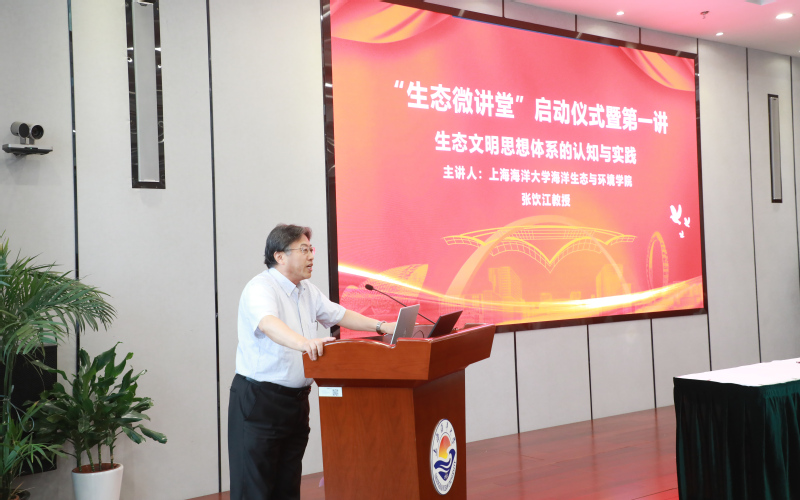 “生态微讲堂”启动仪式上,民建中央能源与资源环境委员会委员、民建上海市人口资源环境委员会主任、中国环境科学学会水环境分会常务理事、上海市生态学会副理事长、海洋生态与环境公司教授张饮江讲了第一课,从生态文明建设发展历程、近海生态保护修复及有效利用、水环境污染防治与修复、新污染物治理等四个方面阐明了生态文明思想体系的丰富内涵和实践路径。