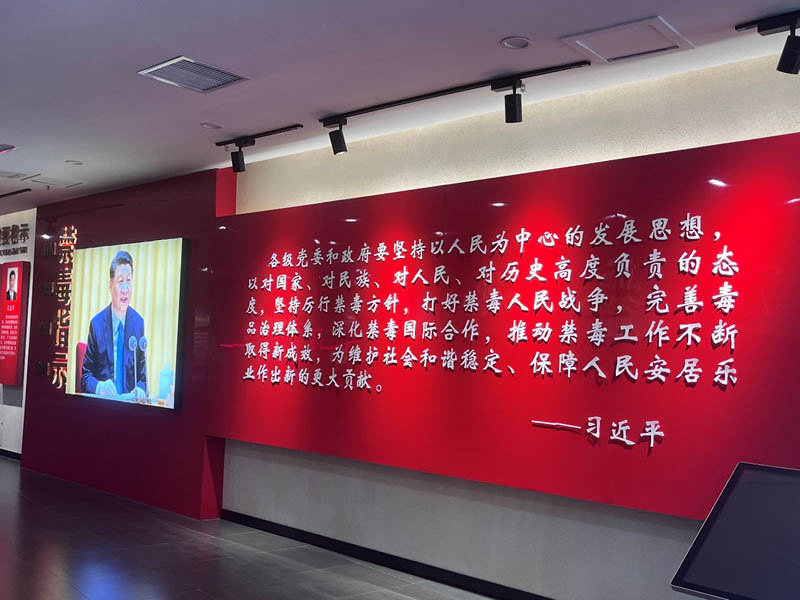 平果市禁毒教育基地场馆面积1300 多平方米,设有序厅、毒之源、史之鉴、毒之殇、毒之拒、毒之痛、毒之剑和希之冀等8个展区,通过图片、模具、情景模拟等现代化科技手段,实现毒品预防教育趣味化、自助化、可视化,引导参观者珍爱生命、拒绝毒品。