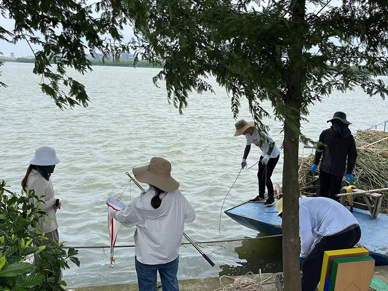 团队成员认真学习习近平生态文明思想和党的二十大精神,通过文献检索做好背景调查,了解临港自然环境、地形、地貌以及社会、经济发展现状及水污染状况。在此基础上确定调研区域,现场踏勘选取采样断面,因地制宜选择生物调研方法和碳汇核算方法。