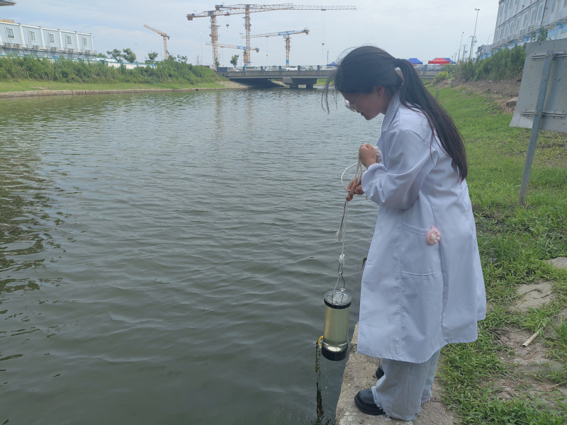 7月7日,团队来到滴水湖现场勘察。为确保数据准确性与可靠性,实践团队制定详细方案,确定了采样时间、实验方法。团队成员冒着酷暑,对滴水湖进行了4次水样采集和水质检测。专业的现代化环境监测设备被应用于滴水湖,成为保护水环境的“眼睛”。无论在户外采样还是在实验室分析,团队成员都时刻保持着高度的专注和耐心。尽管面临着困难和挑战,完成监测任务时仍感受到为生态环境保护贡献力量而获得的无法言喻的成就感。