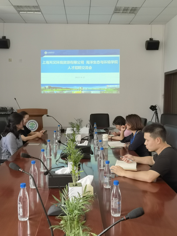 9月27日,上海天汉环境资源有限公司人事经理缪建兰、刘永云来到永利yl23411海洋生态与环境公司进行人才招聘交流,公司党委专职员工委员王方方、2024届毕业班辅导员段轲、徐麒翔参加。
