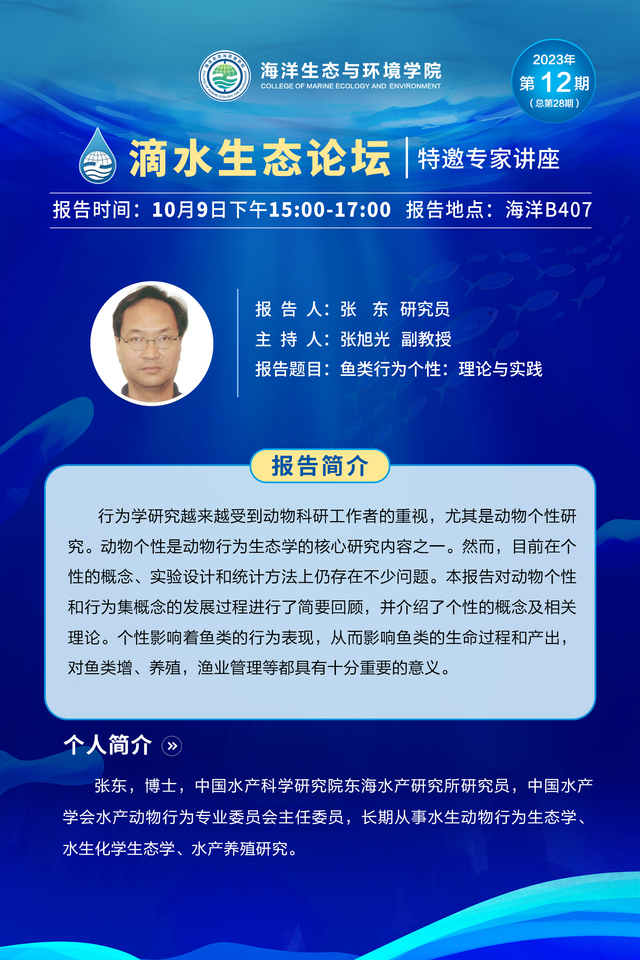 滴水生态论坛(28)| 鱼类行为个性:理论与实践(张东)