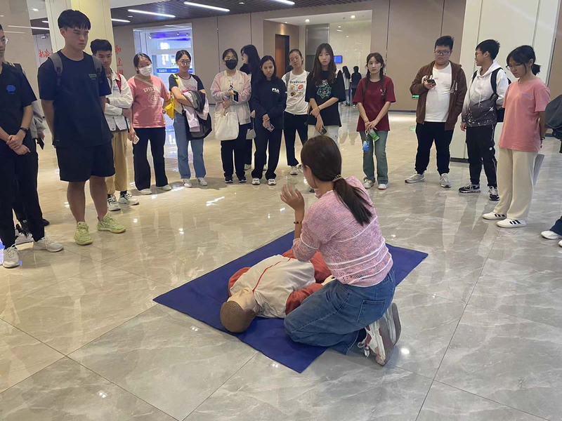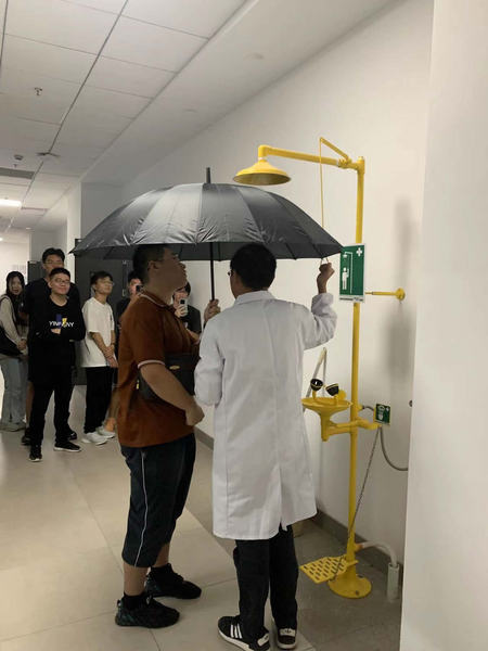 支部党员王春峰进行了新生实验室安全教育。他系统介绍了实验室规章制度、安全事故案例和突发事件处理处置方式,要求新生树牢安全意识,严格遵守规章制度,养成良好实验习惯。袁林、赵旭讲解了实验室喷淋装置使用方法、特种设备(压力容器)应急处置措施,希望员工掌握常见的实验室应急处理能力。在海洋科技大楼一楼大厅,新生观摩了校红十字协会急救部工作人员的急救示范演练,学习心肺复苏、伤口包扎等急救知识和技能。