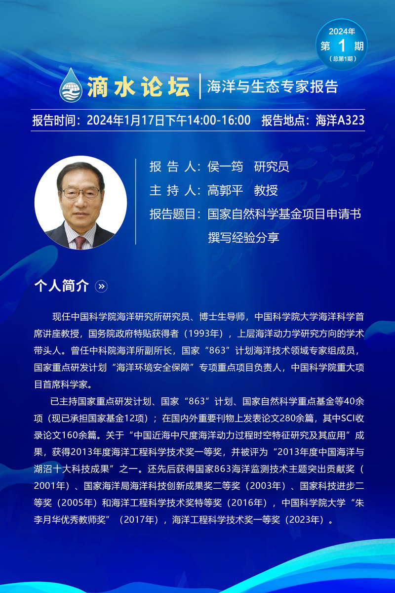 滴水论坛(1)| 国家自然科学基金项目申请书撰写经验分享(侯一筠)