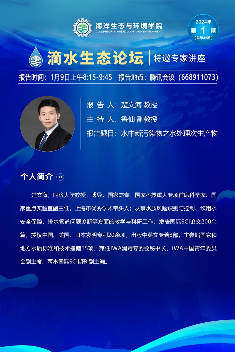 滴水生态论坛(41)| 水中新污染物之水处理次生产物(楚文海)