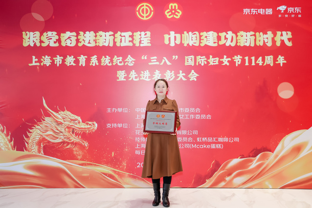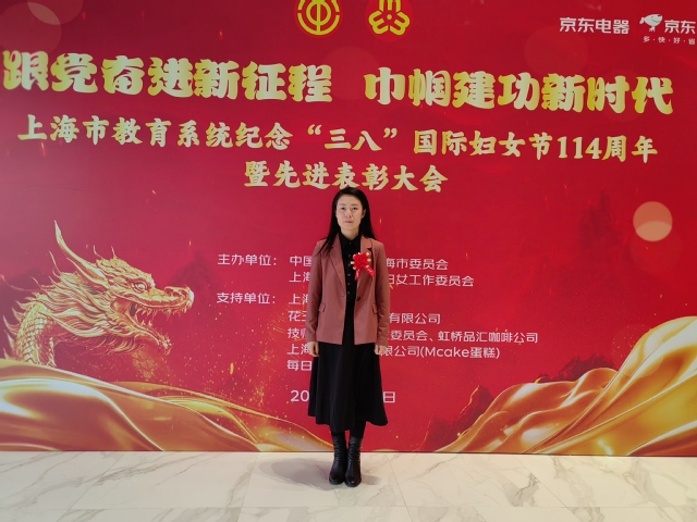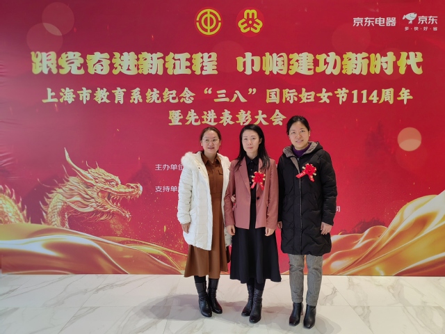 近日,以“跟党奋进新征程 巾帼建功新时代”为主题的上海市教育系统纪念“三八”国际妇女节114周年暨先进表彰大会在上海教育会堂隆重举行。校妇工委组织获奖教师代表参会并接受表彰。