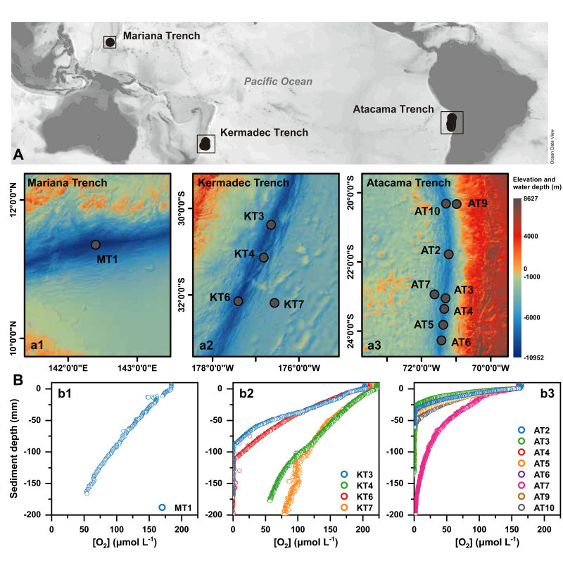 近日,国际学术期刊《自然-通讯》(Nature Communications)在线刊登了永利yl23411极端海洋研究团队与合作者的最新研究成果《Strong linkage between benthic oxygen uptake and bacterial tetraether lipids in deep-sea trench regions》(海沟区域底栖耗氧与细菌四醚膜脂化合物的强关联性)。该论文以三条太平洋深渊海沟为研究对象,分析了沉积物中来自细菌微生物的细胞膜脂化合物,并结合文献数据,提出了一个能够灵敏指示沉积物耗氧速率的新指标。该工作对于定量评估深海微生物活动强度和沉积有机碳的分解与保存具有重要意义。