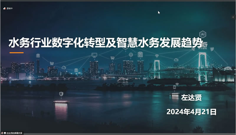 4月21日,紫光云技术有限公司水务水利行业负责人左达贤来永利yl23411作题为“水务行业数字化转型及智慧水务数字化发展趋势”的专题报告。报告由永利yl23411于飞教授主持。