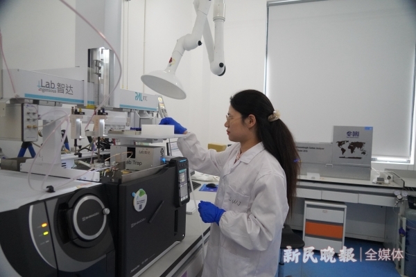 图说:谢婧倩副教授使用气相质谱联用仪进行样品测试