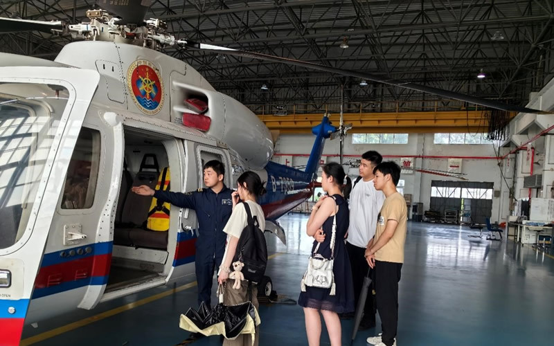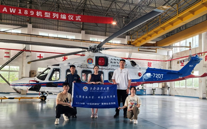 7月上旬永利yl23411暑期社会实践项目“科普深蓝知识 托举生命之舟”团队来到交通运输部东海第一救助飞行队参观,在学习过程中,团队成员首先被两款先进的直升机所吸引——AW-189与S-76D。经由副驾驶何伟迪的详尽解说,他们了解到在实际搜救过程中,AW-189可以担任主要搜救直升机,利用其高速和灵活性快速到达搜救区域,并进行初步搜索和定位;而S-76D则可以作为支援直升机,携带更多的救援物资和人员,在AW-189确定遇险目标后,迅速前往现场实施救援。何伟迪分享了2023年9月19日的一起紧急救援案例。当日上午,B-7359机组接到指令后立即紧急出动,来回500公里成功搭救受伤渔民。这一案例不仅彰显了飞行队专业素养和高效反应能力,也为小组成员提供了宝贵的实战经验。